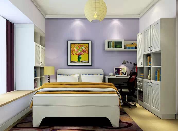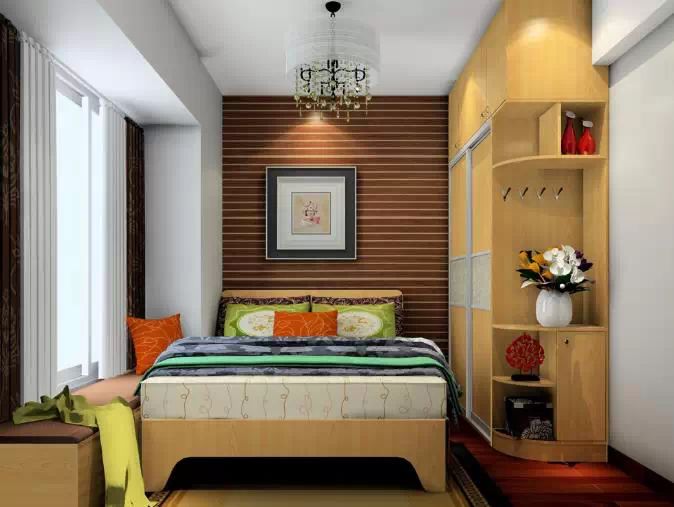 卧室有限的空间增加储物功能,可以考虑使用上层空间,在床头和窗边等设计吊柜,增加部分储物空间。