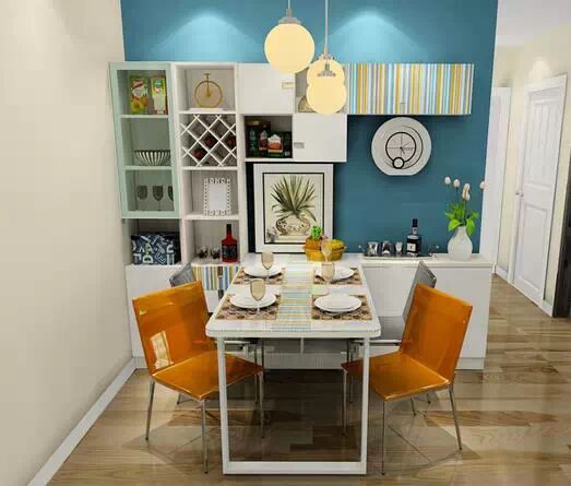 细致地规划柜体的收纳区域,开放与封闭结合,这样不仅能将酒柜餐柜组合在一起,还能摆放装饰品。